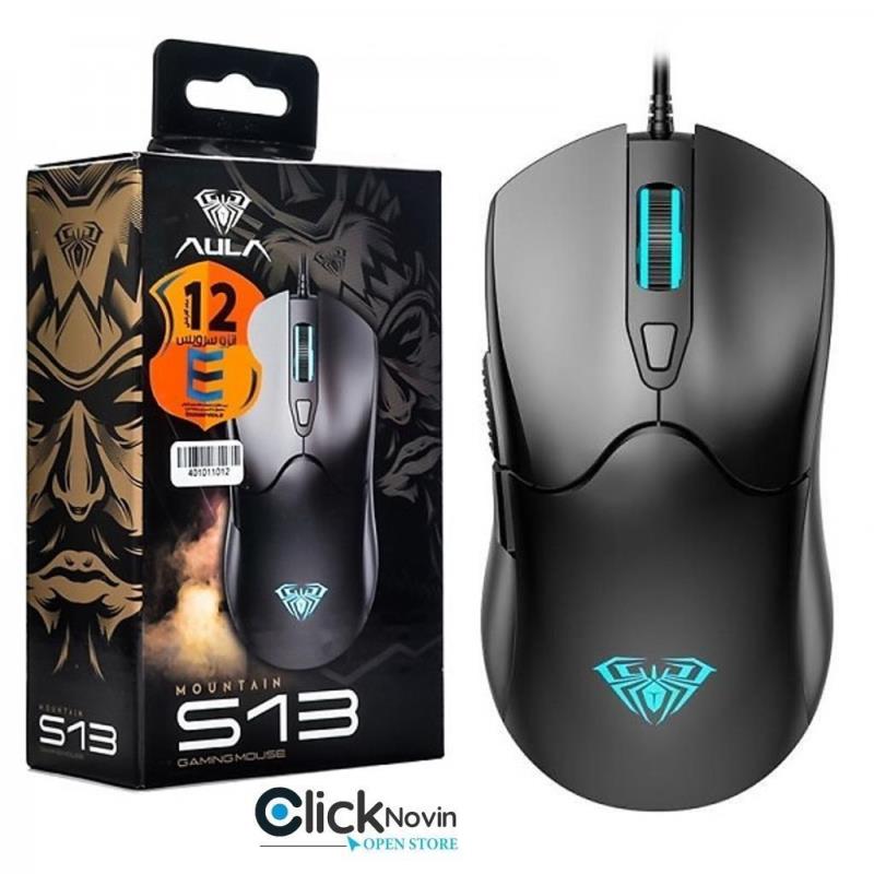 موس سیم دار گیمی AULA-S13-GAME با سنسور اپتیکال دقیق، DPI چندسطحی، نورپردازی RGB، 6 دکمه کاربردی و کابل USB مقاوم؛ انتخابی پایدار و خوش‌دست برای گیمینگ و کار روزمره.