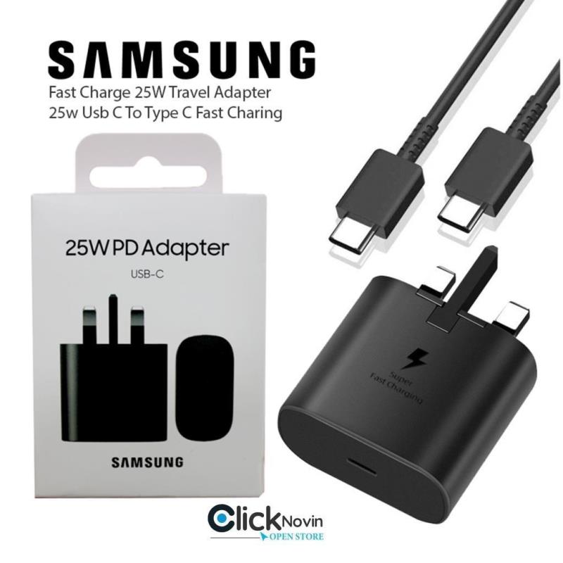 آداپتور دیواری USB‑C با توان 25 وات و فناوری PD؛ مناسب شارژ سریع سامسونگ و دستگاههای سازگار با PD، طراحی جمعوجور و ایمنی چندلایه برای استفاده روزمره.