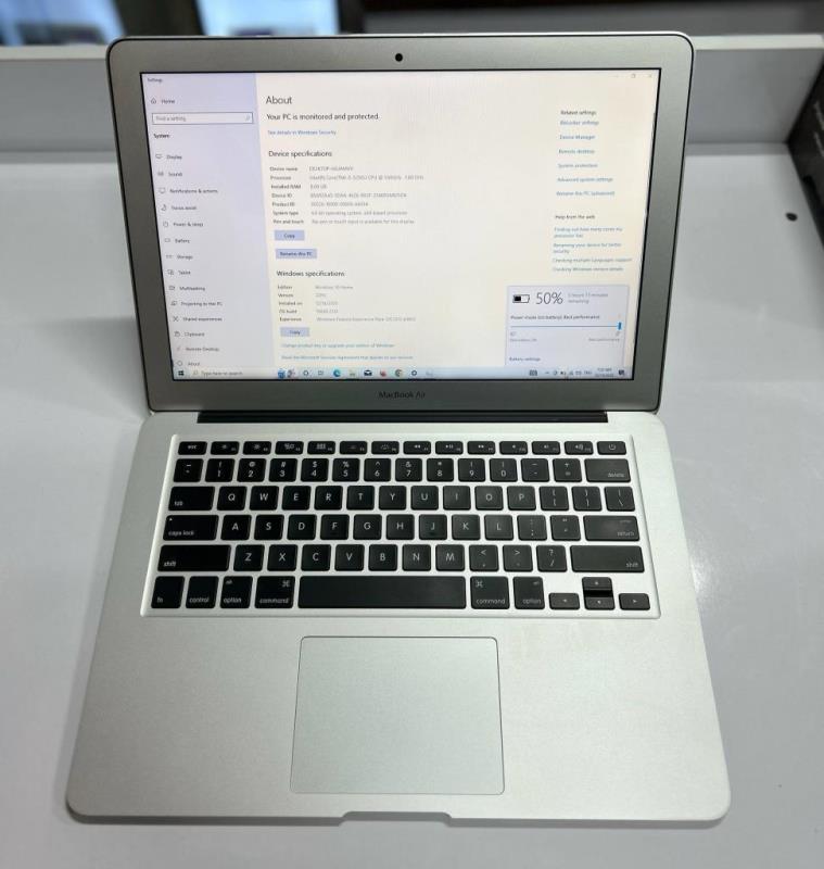 مک بوک ایر A1466 سال 2015 با پردازنده i5 5250U، رم 8GB، SSD 128GB، گرافیک Intel HD 6000 (2GB) و نمایشگر 13 اینچ نقرهای؛ مناسب کاربری روزمره، اداری و دانشجویی.