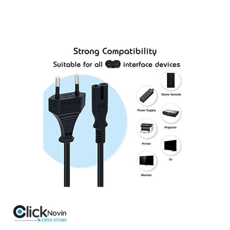 کابل پاور استاندارد با کانکتور دو چاک (C7) برای دستگاههایی که ورودی برق دو شیار بیضیشکل (C8) دارند. گزینهای اقتصادی و مناسب استفاده روزمره با بستهبندی ساده.