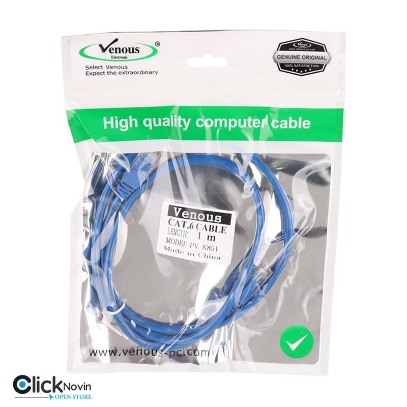 کابل شبکه 1 متری CAT6 ونوس مدل K851-1M با کانکتور RJ45 دو سر؛ مناسب اتصال سریع و پایدار میان مودم، روتر، سوئیچ و کامپیوتر. پشتیبانی تا 1 گیگابیت و پهنای باند 250 مگاهرتز.